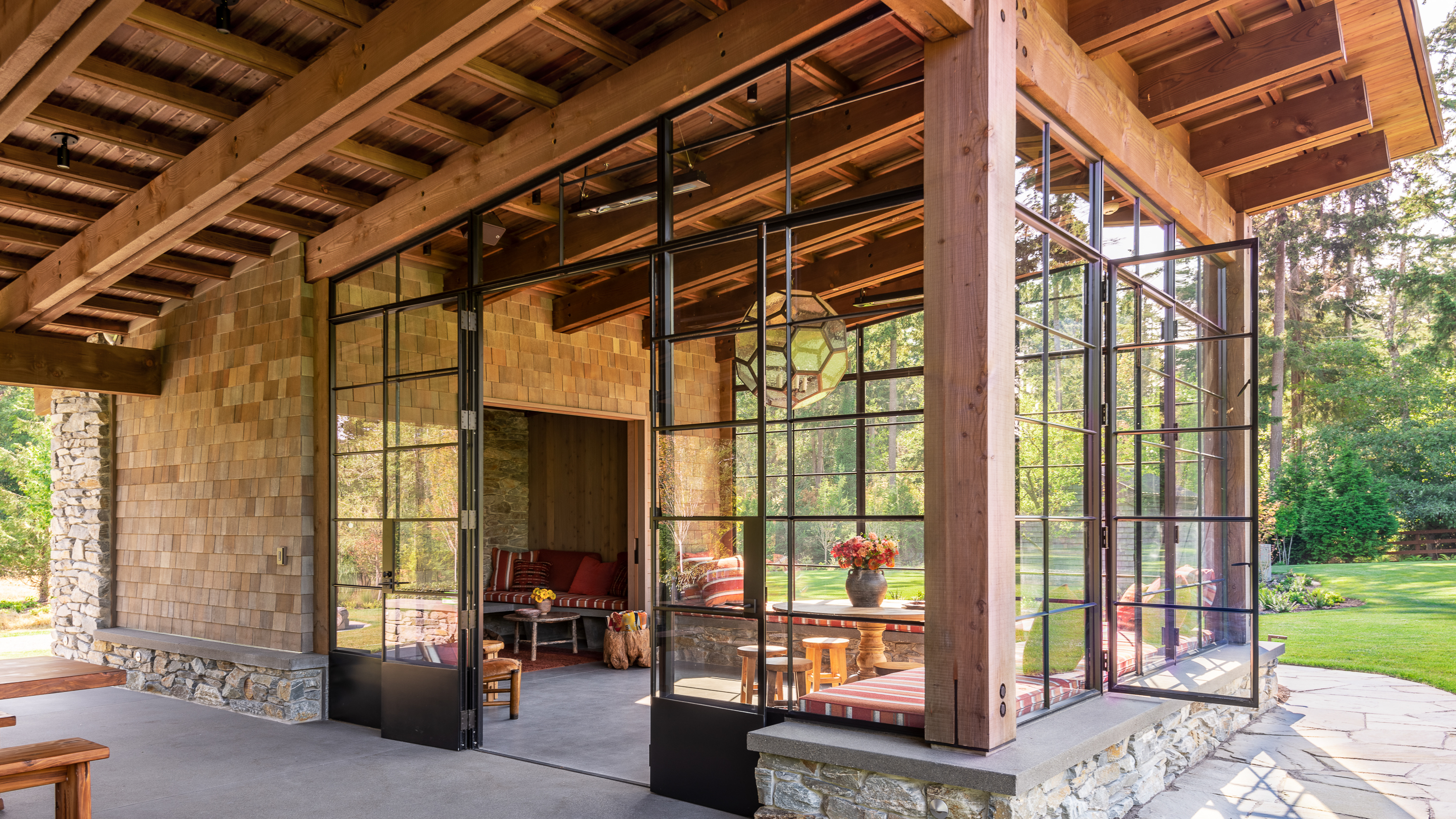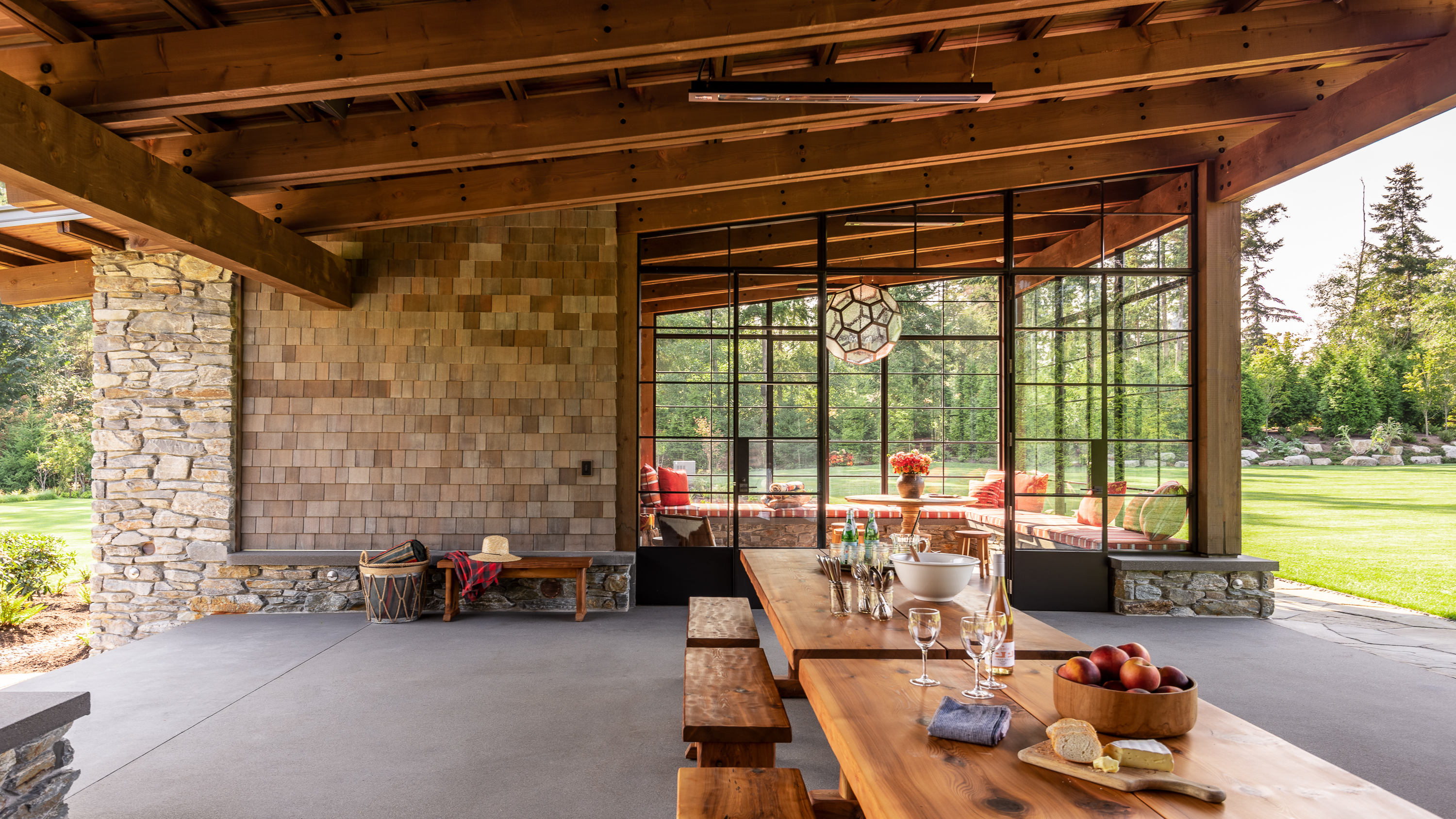 Every detail of Whidbey Island Fieldhouse reflects meticulous craftsmanship and a deep connection to the local landscape. From the locally sourced materials like Vancouver Island stone and Pacific Northwest timber to the careful detailing of the steel-framed windows and doors, every element of the Fieldhouse is a nod to the region’s heritage and natural beauty.