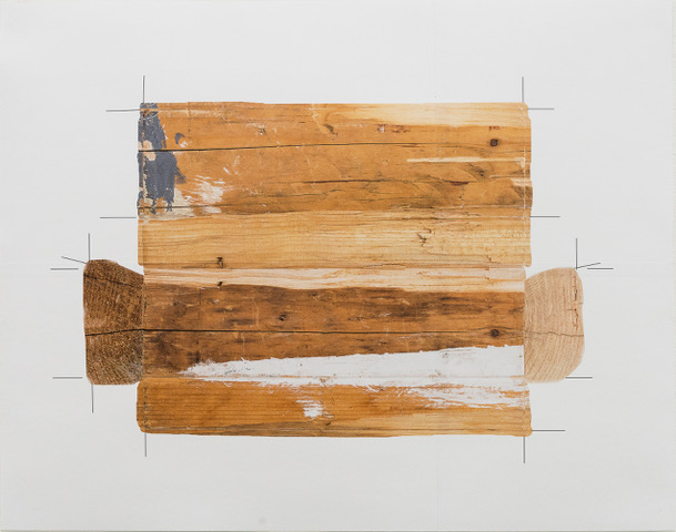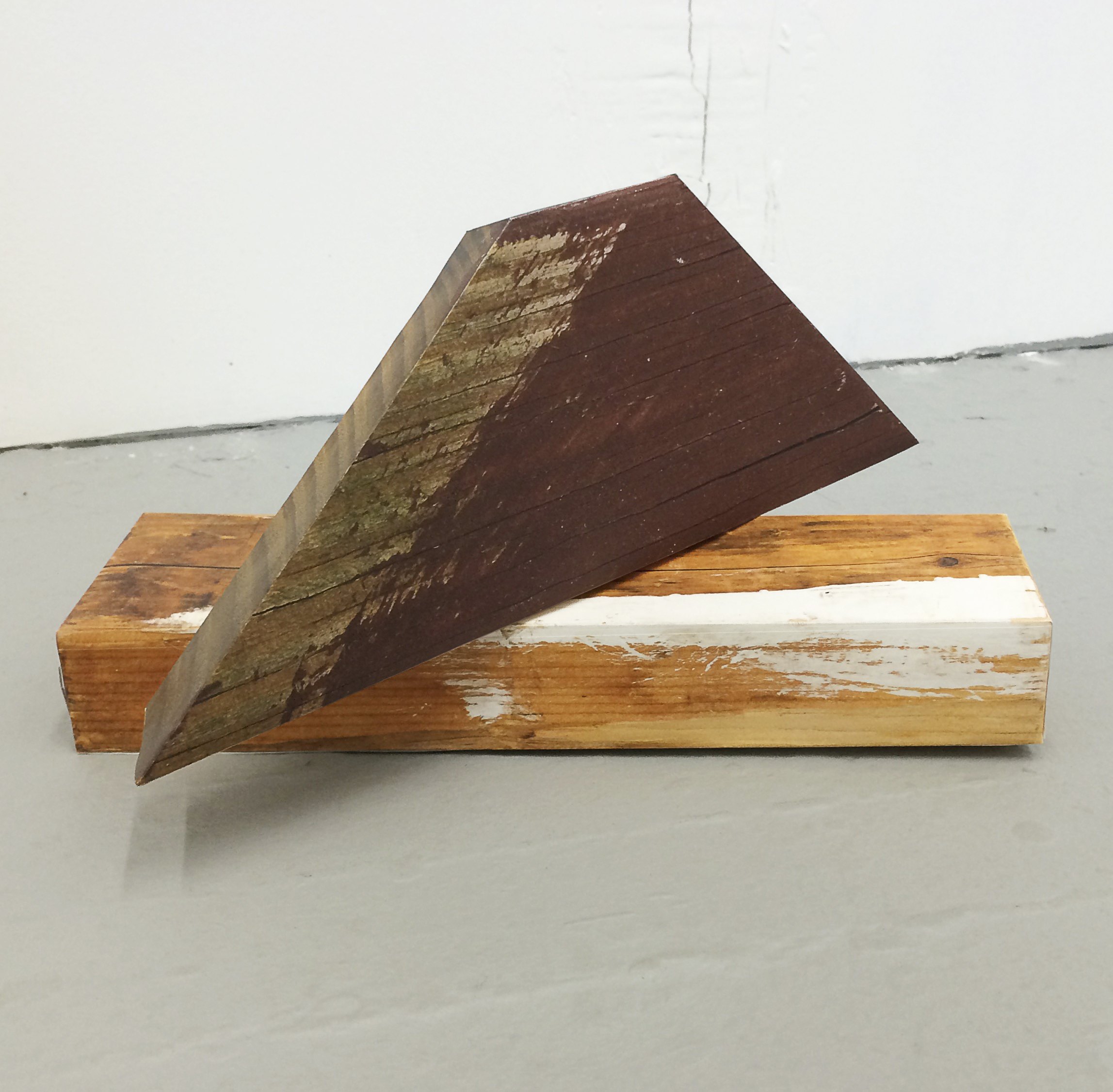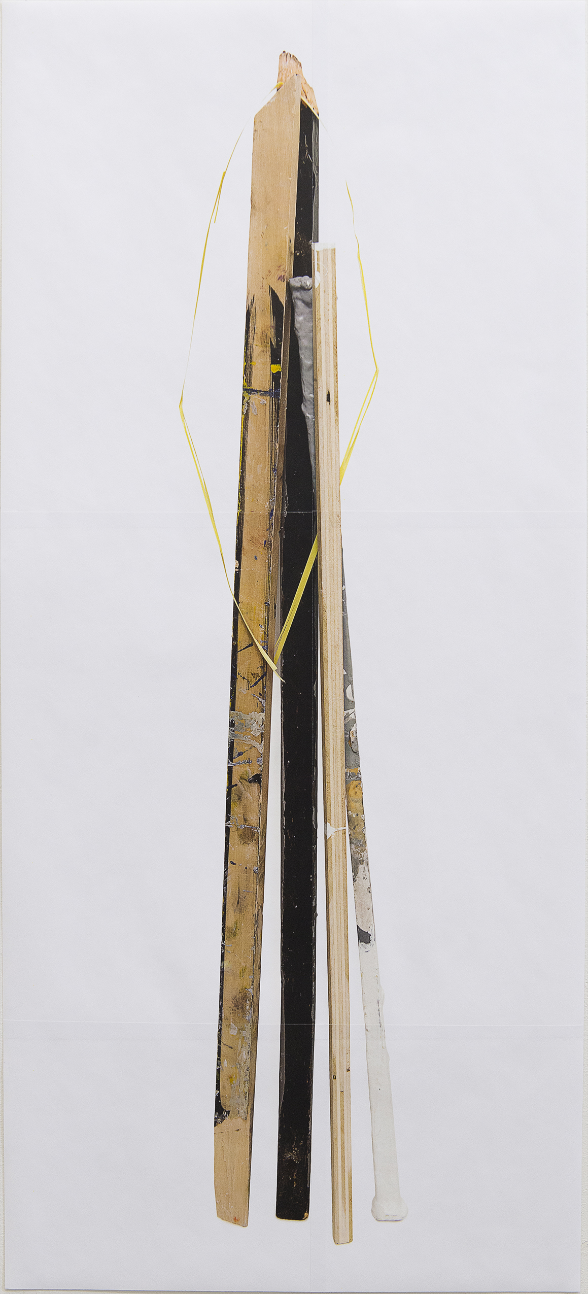 tiled photocopies, yellow stick, orange straw, wood scrap,