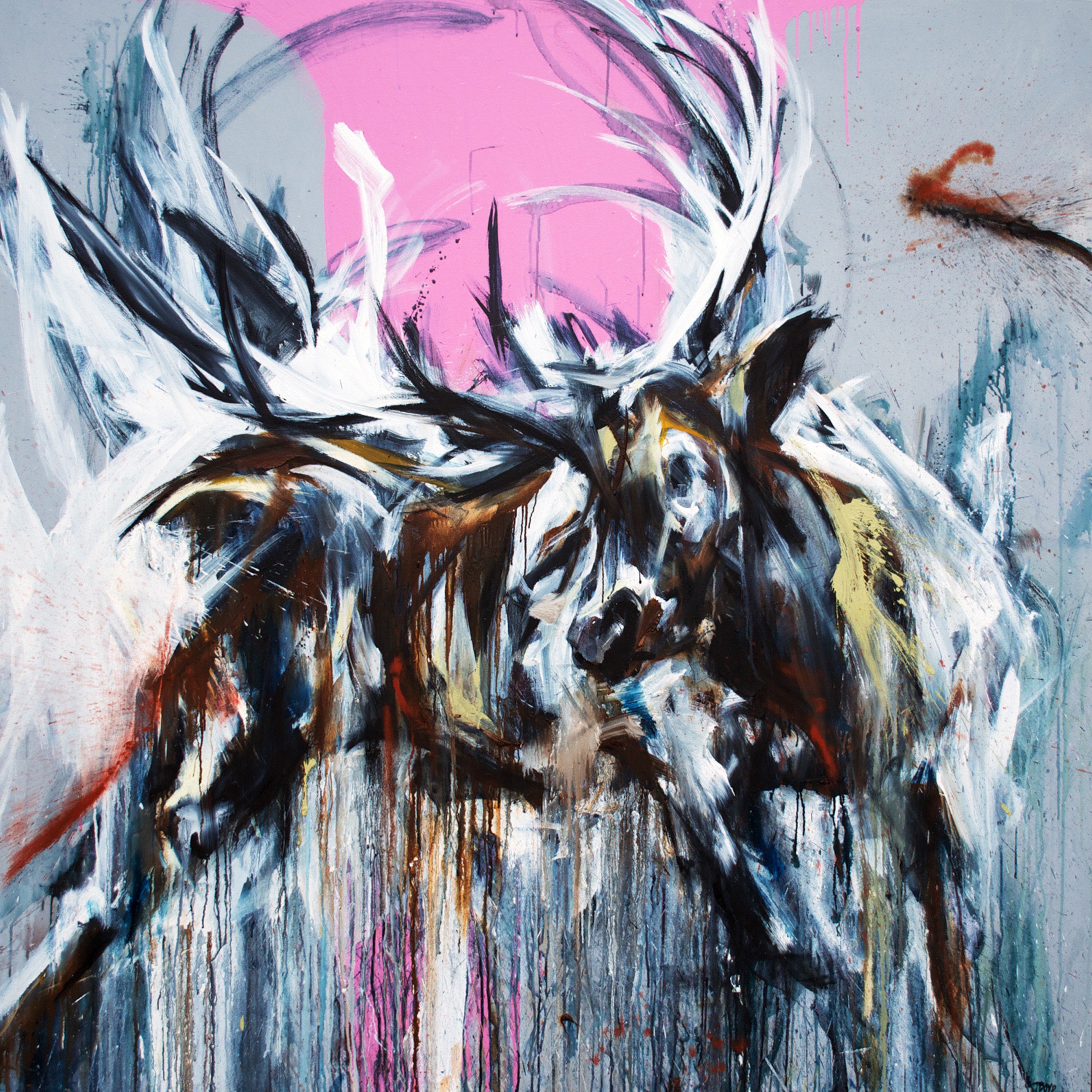 Tracy has developed a distinct personal style over the years, which has been described by some as calculated chance. Her background in Design shows itself through strong graphical influence and an ability to create visual impact. She’ll often use well defined brush strokes, intense texture and strategic dripping effects evoking intimacy, while the scale of the canvas itself carries as much power as the sentiment behind the subject.