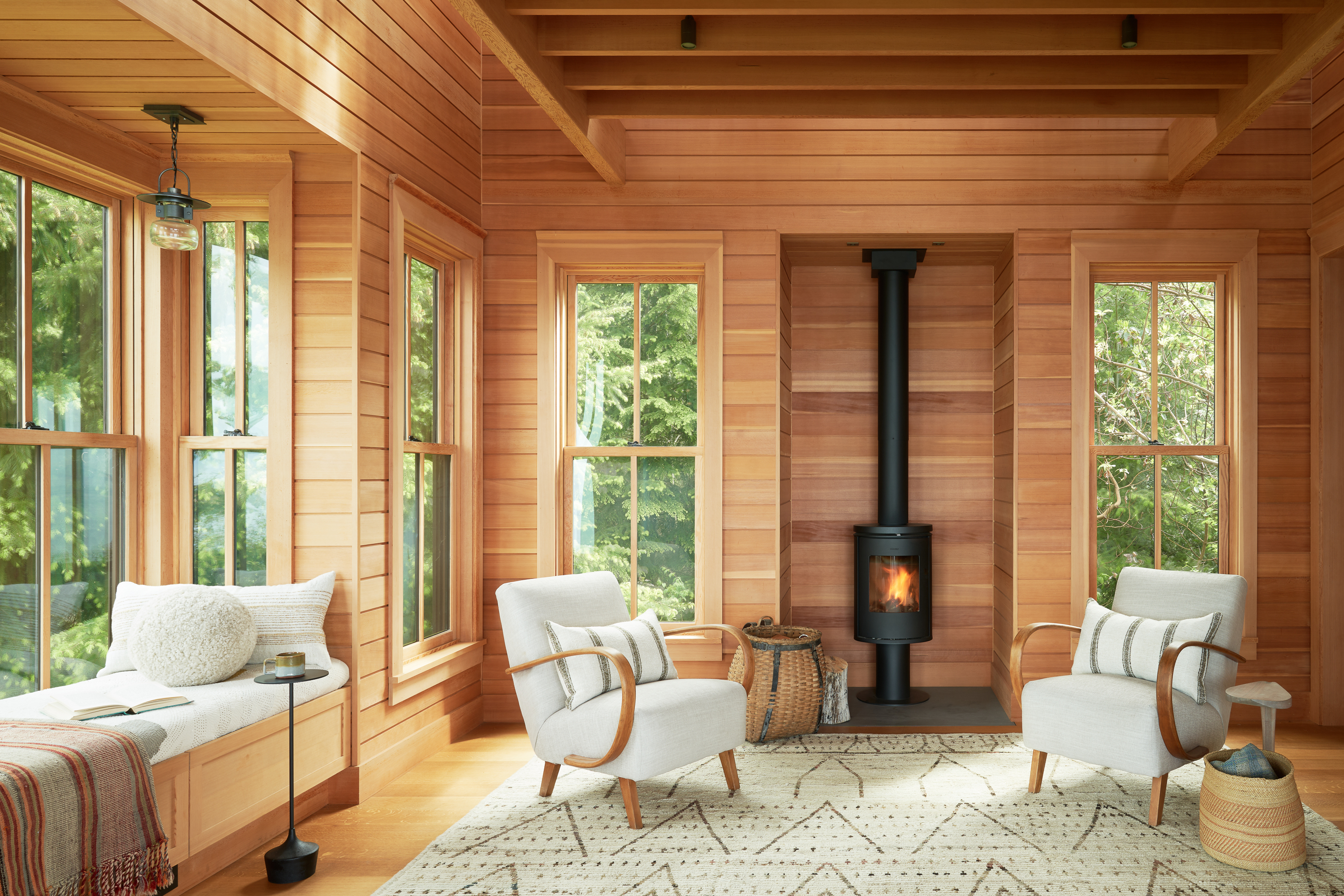 Within the studio, there is a deep level of comfort that stands in contrast to the surroundings. The building plays through all seasons but with a fire lit there is no better place to be on a cold and wet day.